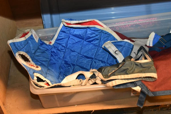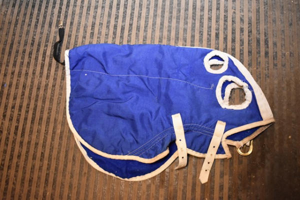 Mini horse hoods including quilted in size small, 2 nylon (non-quilted) and 2 winter medium size hoods