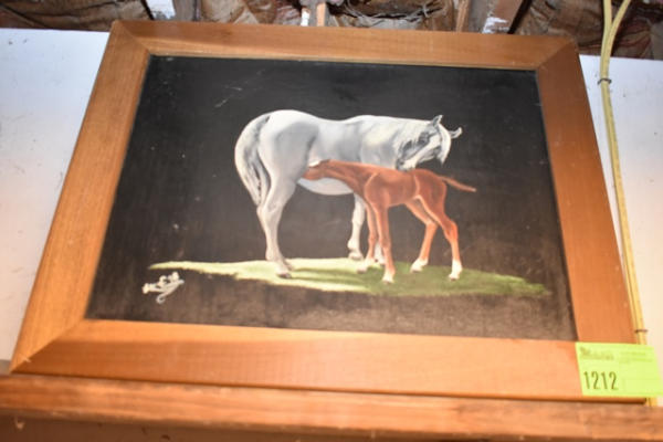 Mare and Foal framed acrylic painting, 29" x 24", signed by the artist from 1998