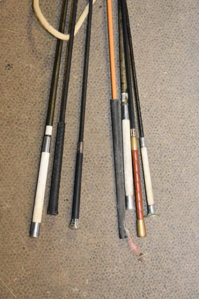 Carrot stick, 3 driving whips and 3 dressage whips