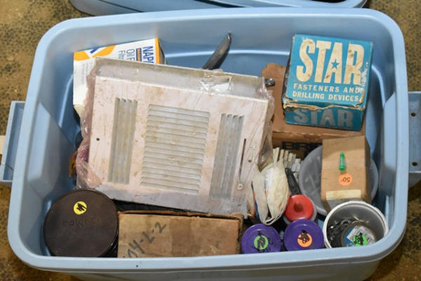 Lot consisting of assorted oil filter, shelving clips, hole punch, screws, etc.