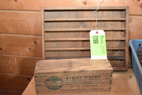 1920s type print box and First Price Pasteurized Processed Cheese vintage wooden box from The Albany Packing Co., Inc. in Albany, NY