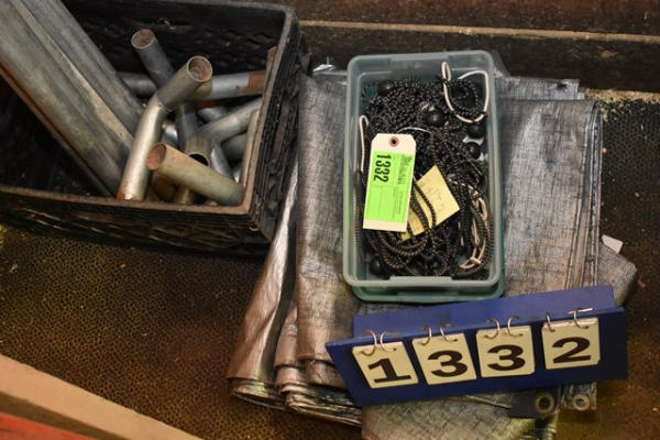 Lot includes 10' x 10' pipe and tarp tent with poles, tarp and bungee cords, believed to be complete, but not guaranteed