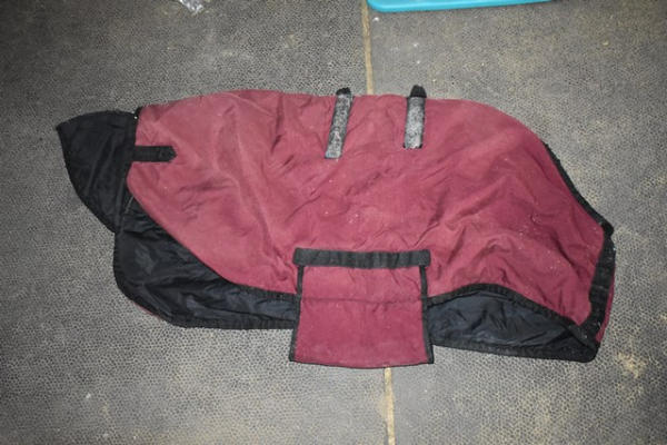 Medium weight, closed front, 42" mini blanket with belly band and long sewn tail flat