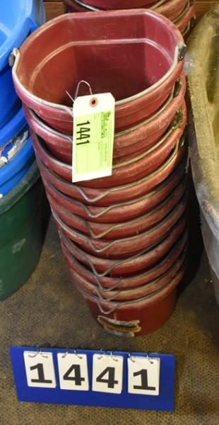 Lot of 11 6 quart flat back feeder buckets