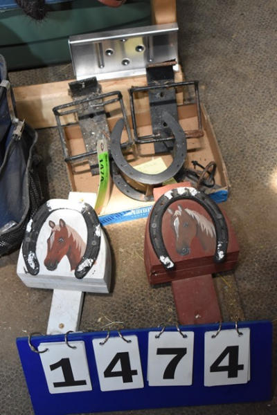 Salt block holders, 1 aluminum, 2 painted bridle hooks