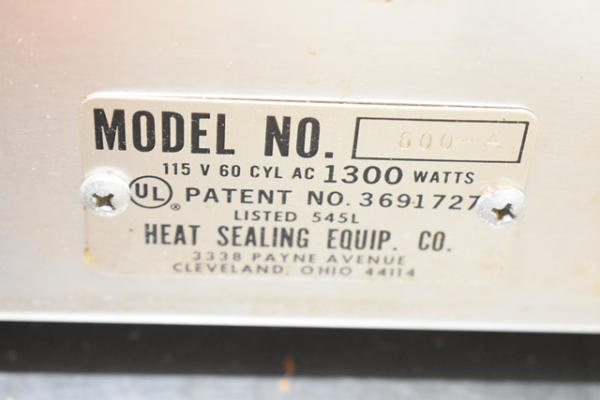 Heat Sealing Equipment Company sealing machine Model #600-A