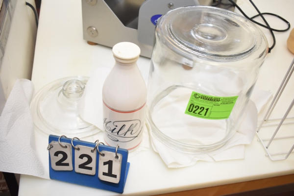 Cookie jar and milk bottle