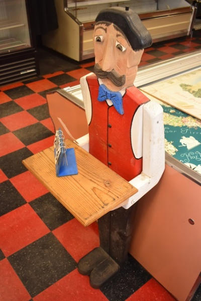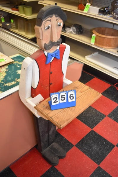 Wooden Frenchman with tray, approx. 4' tall