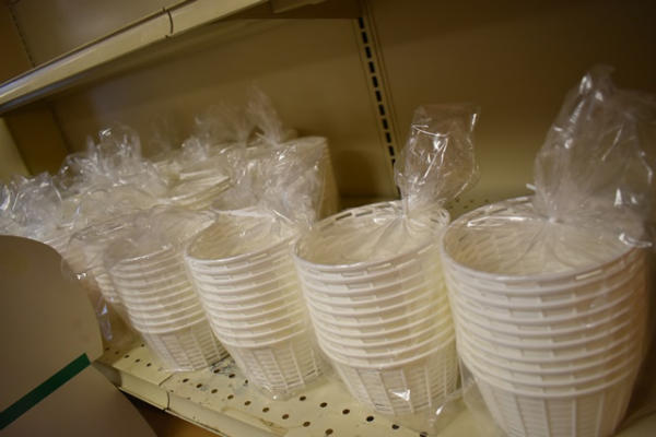 Contents of shelf consisting of plastic baskets