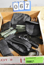 Lot of flashlights, handcuffs, handcuff pouch, and other pouches