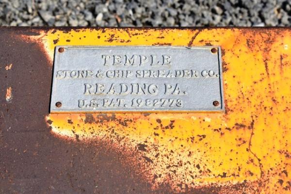 Temple stone and chip spreader for back of dump truck, approx. 83 1/2" wide at the top