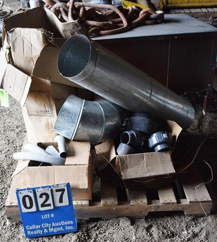 Pallet lot consisting of metal conduit, PVC fittings and stove pipe (goes up to 10")