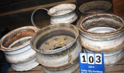 Large lot of wheels, 4 aluminum wheels, believed to be 24" and assorted steel wheels