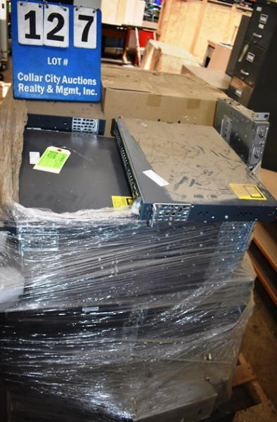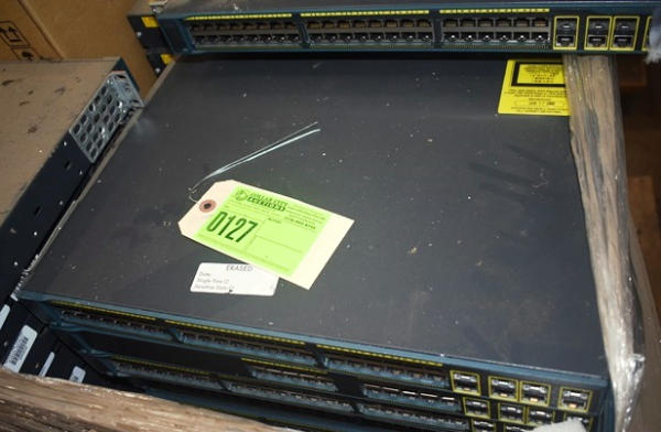 Pallet of hubs, believed to be mostly Cisco Catalyst 2960G and assorted other electronics