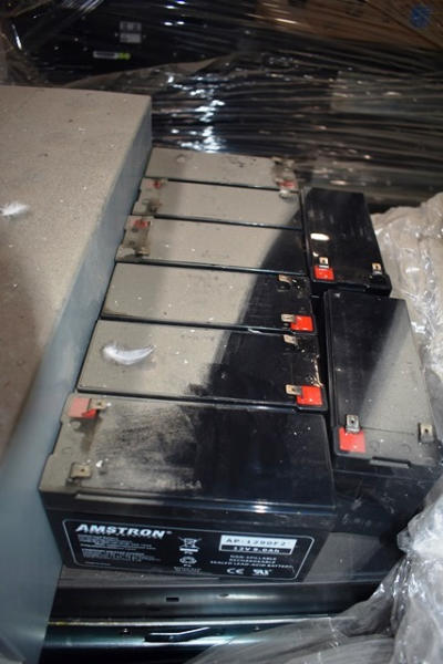 Pallet of electronic parts consisting of battery backup housings, batteries