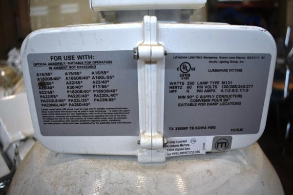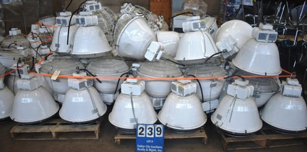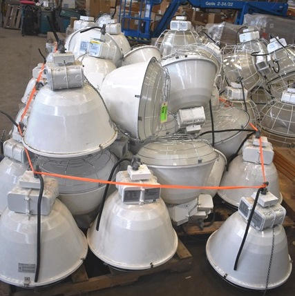 Lot of 36 +/- hanging light fixtures, 120/208/240/277 volts