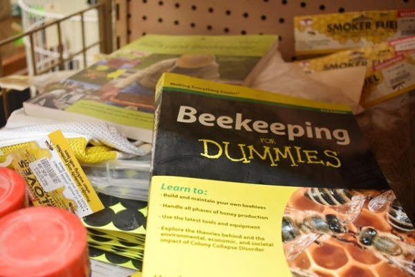 Misc. lot including sausage and meatloaf seasoning mix, books, beekeeping accessories