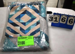 Tri-teal quilt #88, date finished 2017, by Handmade quilts by the Slightly Off Quilter, Tina Benson