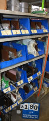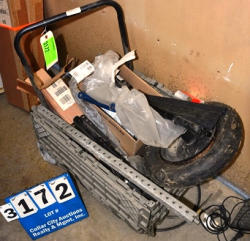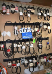 Wall rack containing misc. MTD, Murray lawnmower parts