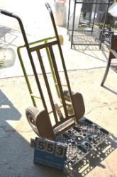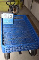 4-wheel yard cart, 83" long x 29" wide x 21" high, plastic body with metal frame
