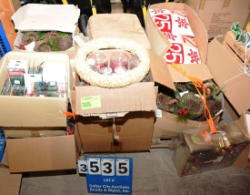 Lot of 7 boxes of decorations including Christmas lights, etc.