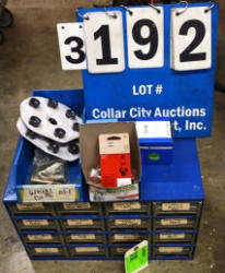 Storage rack with drawers full of misc. screws, nuts, small parts