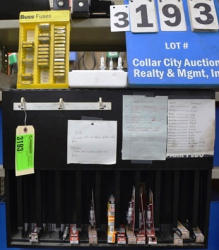 Spark plug rack with misc. spark plugs and a fuse rack with fuses