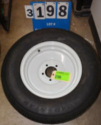 4-lug trailer tire, ST185/80D13LRC, white spoke wheel