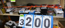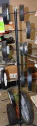 Shelf lot of chainsaw chains and lawnmower pulley assemblies with the hubs
