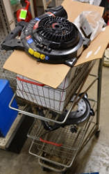 Shopping cart with disassembled leaf blower, unsure whether it is complete