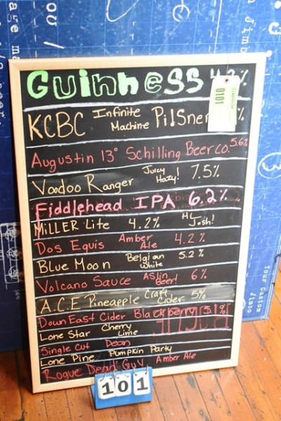 Assorted signs and beer board