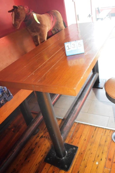 30" x 72" high top table, bolted to floor (CUSTOMER MUST REMOVE)