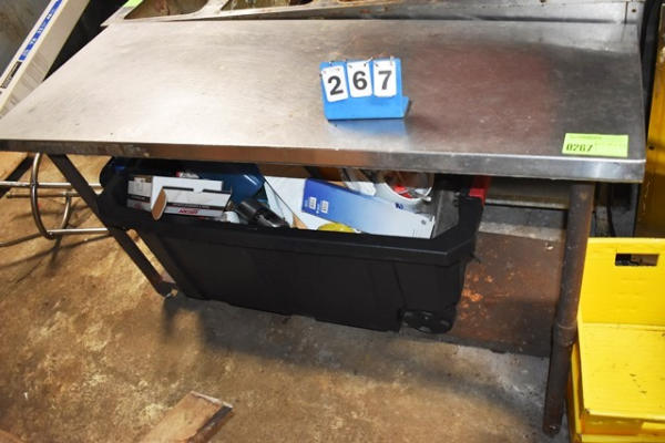 Stainless steel work table, 60" x 24" x 34", missing a leg