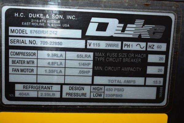 Duke & Son Model 876BRH242, 115 volts, 2-wire, Electro-freeze