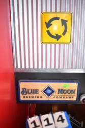 Blue Moon Brewing Company sign, 39" x 14 1/2" and a Roundabout sign