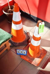 Lot of 4 U-shaped booths with tables and sneeze guards. Buyer must supply a certificate of insurance prior to removal.