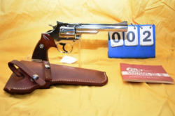 Smith & Wesson 38 Special, Nickel finish, 4" barrel, police model, 6 shot double action revolver, SN: 648135 (WILL REQUIRE FEDERAL 4473 BACKGROUND CHECK. WILL REQUIRE NEW YORK STATE PISTOL PERMIT FOR NEW YORK SALES)