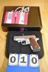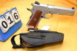 Ruger SR 45, 45 auto, semi-automatic hand gun with spare 10-round magazine and laser sight, 4 1/4" barrel, in case, SN: 380-06733, ambidextrous safety (WILL REQUIRE FEDERAL 4473 BACKGROUND CHECK. WILL REQUIRE NEW YORK STATE PISTOL PERMIT FOR NEW YORK SALES)
