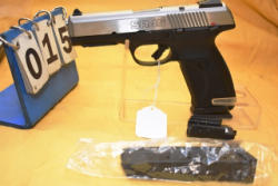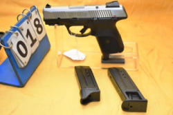Ruger SR 9, 9mm semi-automatic hand gun, 4" barrel, ambidextrous safety and mag release, comes with 1 spare 10-round magazine, soft case and hard case, SN: 331-26605 (WILL REQUIRE FEDERAL 4473 BACKGROUND CHECK. WILL REQUIRE NEW YORK STATE PISTOL PERMIT FOR NEW YORK SALES)