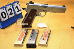 Ruger SR 1911, 45 auto, semi automatic hand gun, 4 3/4" barrel with 2 spare 8-round magazines and original box, SN: 670-75065 (WILL REQUIRE FEDERAL 4473 BACKGROUND CHECK. WILL REQUIRE NEW YORK STATE PISTOL PERMIT FOR NEW YOR