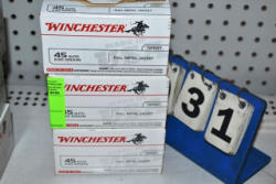 Lot of 3 boxes of Winchester 45 auto, 230 grain ammunition, all 3 boxes are 100 rounds of full metal jackets.