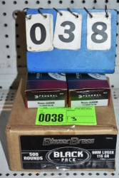 Lot including 1 case of 500 rounds of Blazer Brass 9mm Luger 115 grain full metal jacket ammunition and 2 boxes of 50 Federal 9mm Luger 115 grain full metal jacket RM ammunition