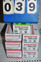 Lot of 6 boxes of Winchester 9mm Luger 115 grain full metal jacket ammunition, 100 round boxes