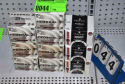 Lot includes 1 box of Remington 22 Golden Bullet, 550 high velocity long rifle cartridges, 1 box of 500 22 high velocity rim fire cartridges and 1 box of 525 Remington Golden Bullet 22 long rifle brass plated hollow points