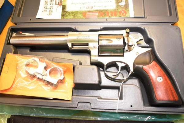 Ruger Super Red Hawk, 44 magnum, 7 1/2" 6-shot revolver, nickel finish with scope rings, SN: 552-47345 (WILL REQUIRE FEDERAL 4473 BACKGROUND CHECK. WILL REQUIRE NEW YORK STATE PISTOL PERMIT FOR NEW YORK SALES)