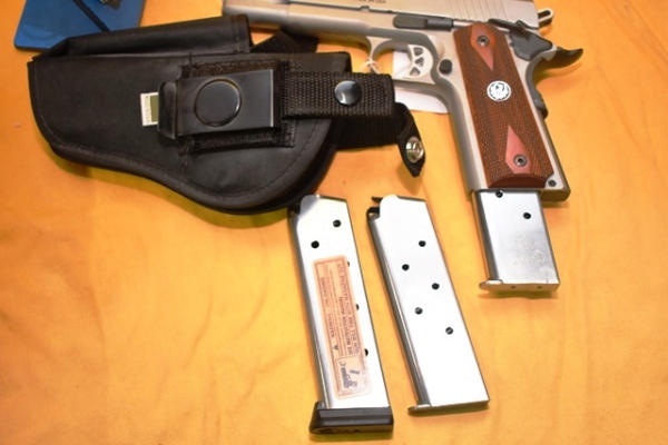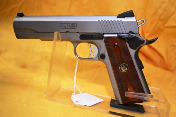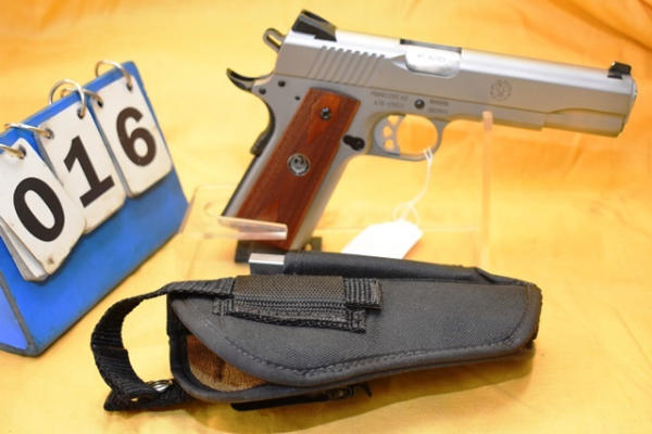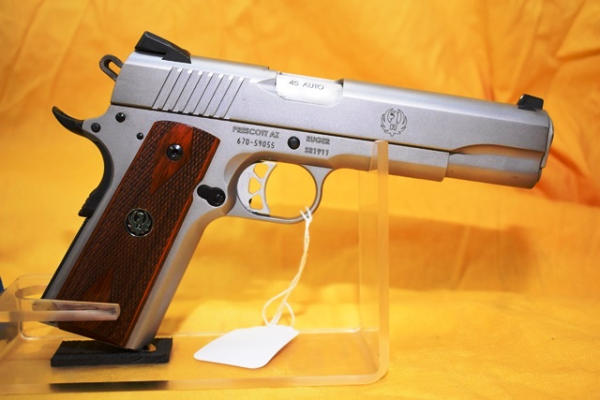 Ruger SR 1911, 45 auto, semi automatic hand gun, 4 3/4" barrel with 2 spare 8-round magazines and a holster with mag carrier in original box, SN: 670-59055 (WILL REQUIRE FEDERAL 4473 BACKGROUND CHECK. WILL REQUIRE NEW YORK STATE PISTOL PERMIT FOR NEW YORK SALES)