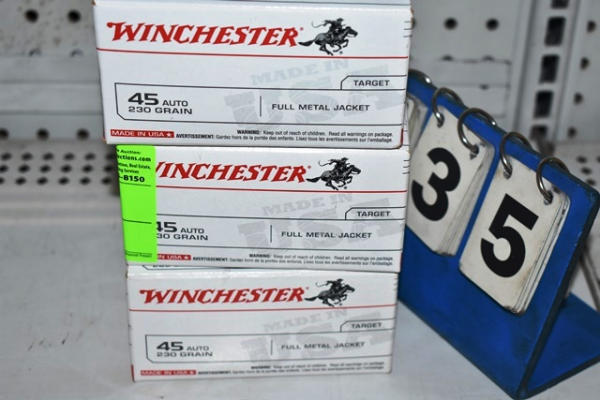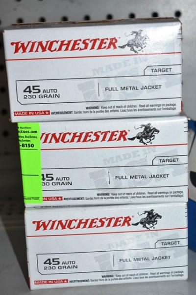 Lot of 3 100 round boxes of Winchester 45 auto, 230 grain full metal jacket ammunition
