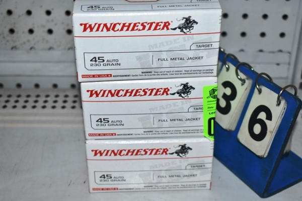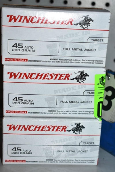 Lot of 3 100 round boxes of Winchester 45 auto, 230 grain full metal jacket ammunition