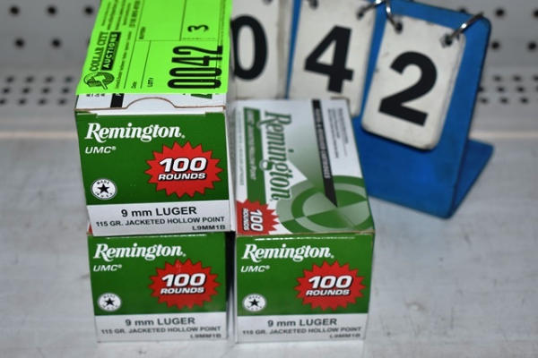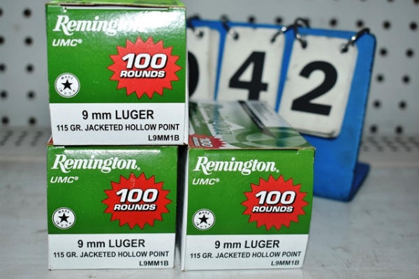 Lot of 3 100 round boxes of Remington UMC 9mm Luger 115 grain jacketed hollow point ammunition