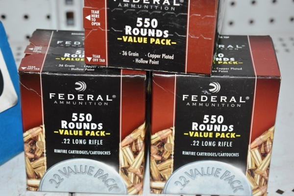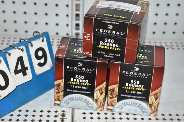 Lot of 3 Federal Ammunition 550 round boxes of 22 long rifle, 36 grain copper plated hollow points